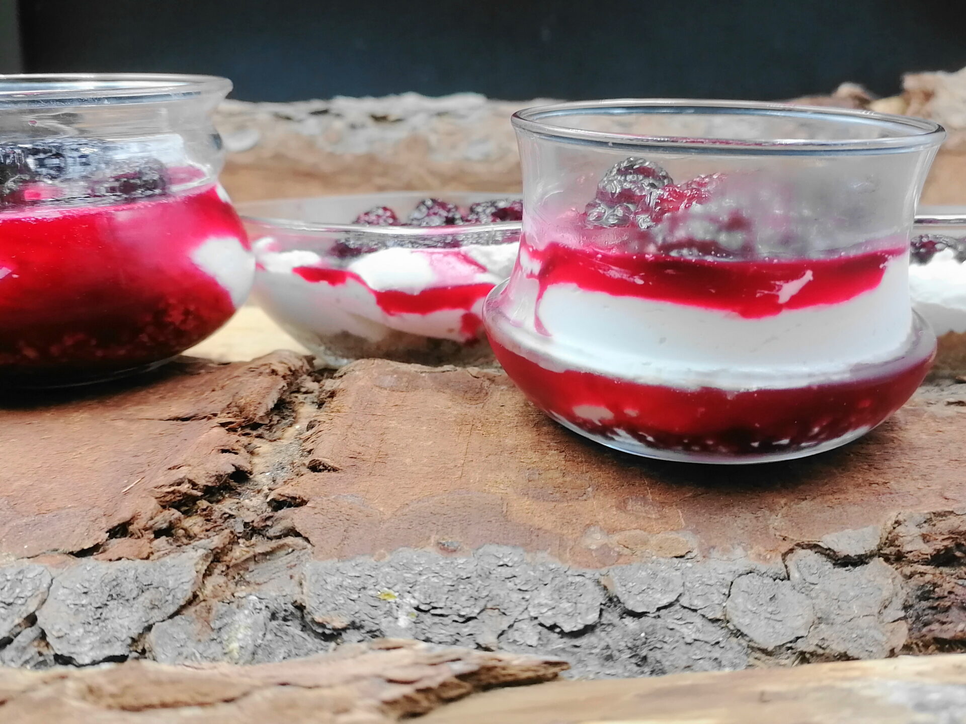 - Μόλις κρυώσει το ενώνουμε με τα μούρα και ανακατεύουμε απαλά.