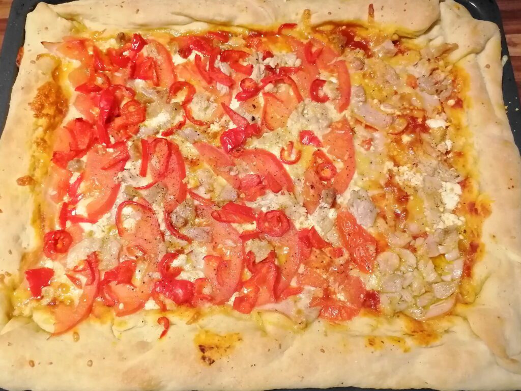 - Κρατάμε ποσότητα και για το υπόλοιπο της πίτσας.