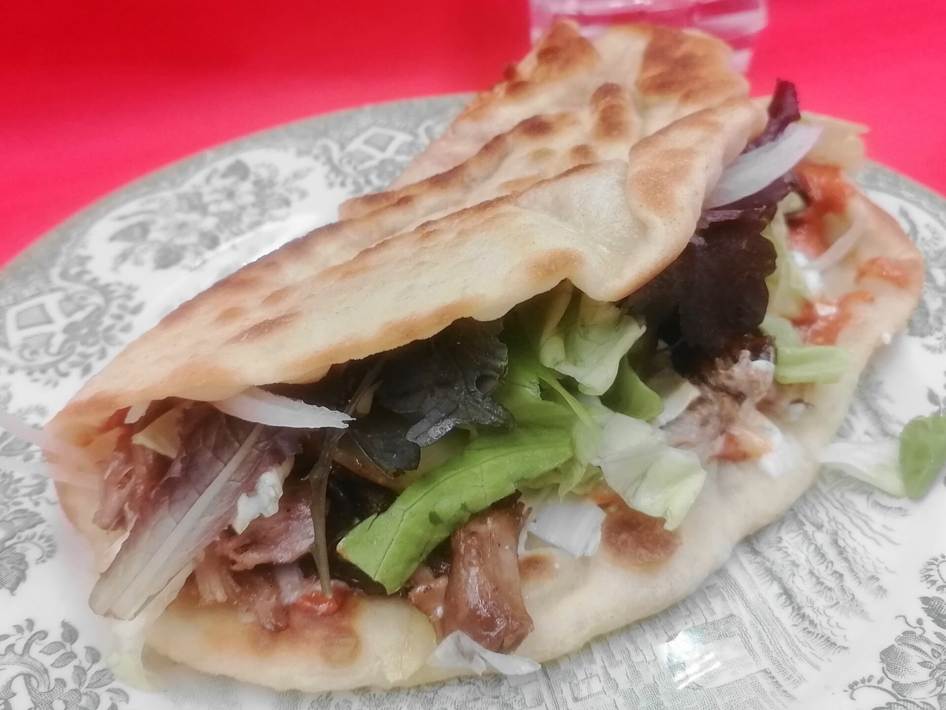 Σάντουιτς με σπιτική πίτα και κατσικάκι