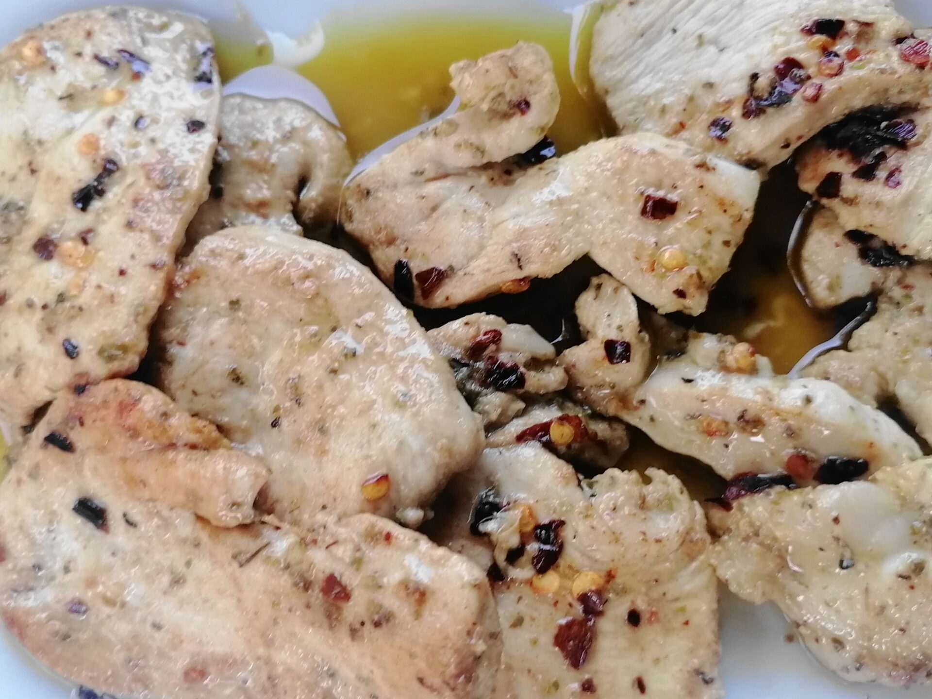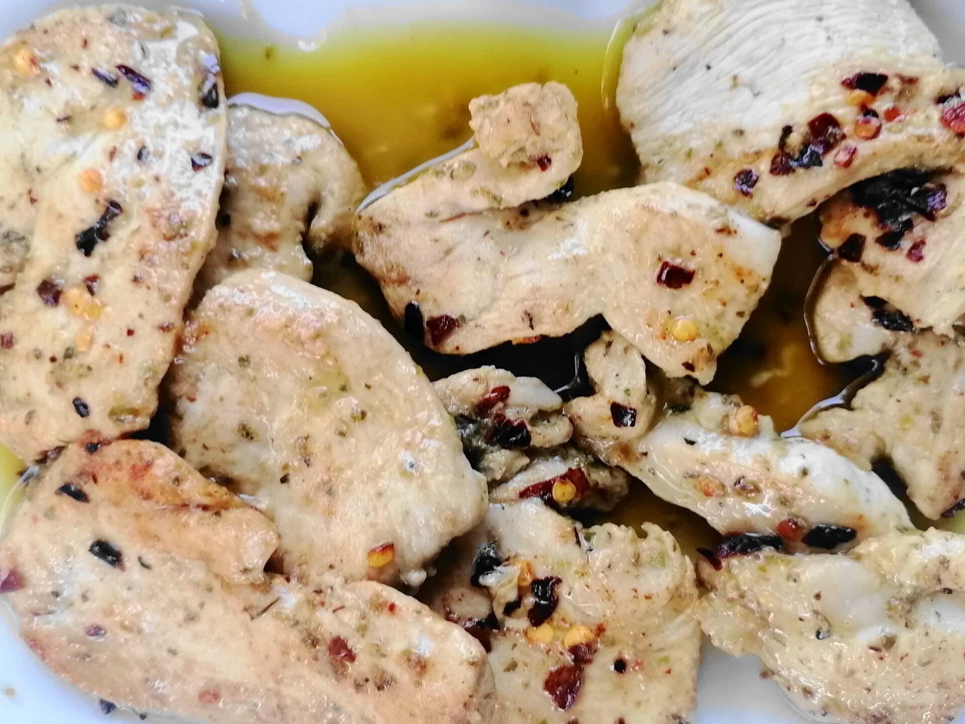 - 1 στήθος κοτόπουλου κομμένο σε λεπτά φιλετάκια