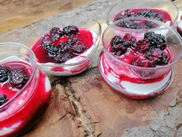 Ζελέ με πλούσια γεύση ροδιού που ολοκληρώνεται απόλυτα με τις δροσερές φράουλες.