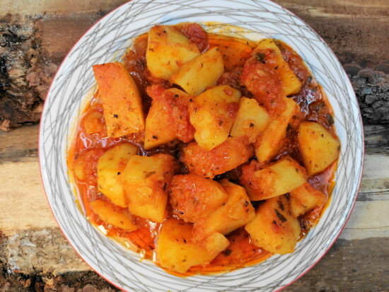 Χοιρινό κατσαρόλας σε συνδυασμό με πατάτες, καρότα και ντοματούλα. Χορταστικό και πολύ νόστιμο φαγητό για το καθημερινό μας τραπέζι.